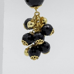 orecchino con agata nera sfaccettata e sfere liscie lucide