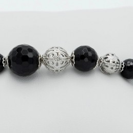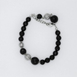 bracciale con pietre naturali infilate, con al centro delle sfere traforate.