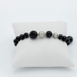Bracciale infilato a mano con pietre naturali e sfere traforate, disponibile anche nella versione argentata.Le sfaccettature dell'agata naturale donano al gioiello lucentezza e, associate alle sfere traforate, rendono il bracciale prezioso ed elegante. Indossalo nelle migliori occasioni.