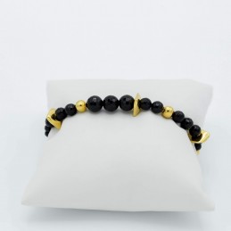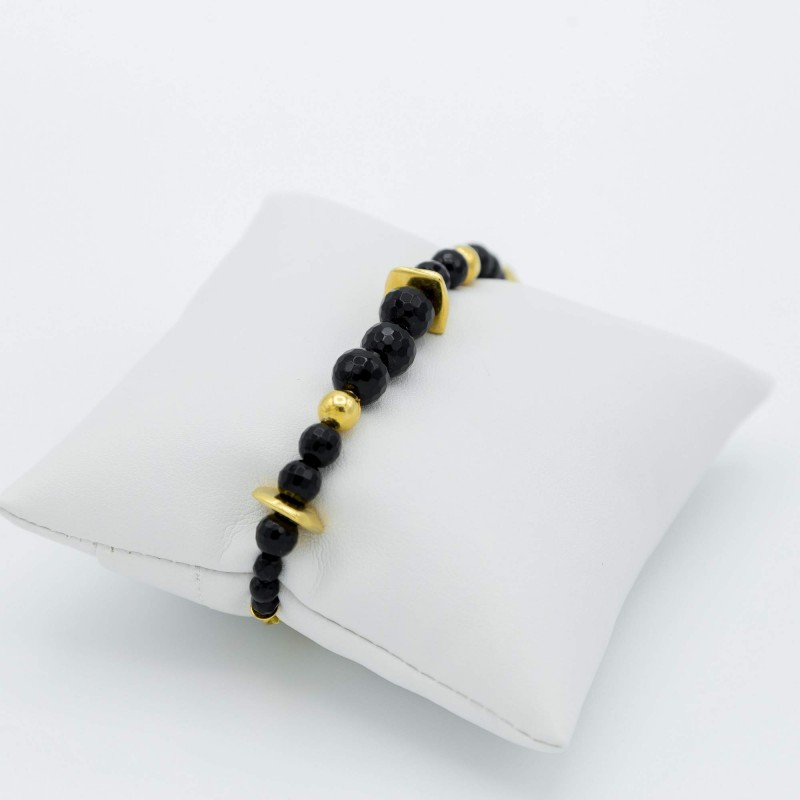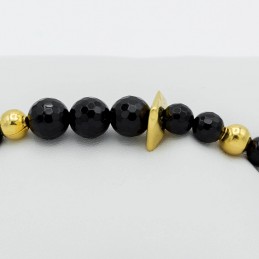 Bracciale un filo con agata nera sfaccettata e sfere liscie lucide
