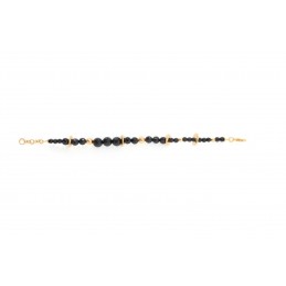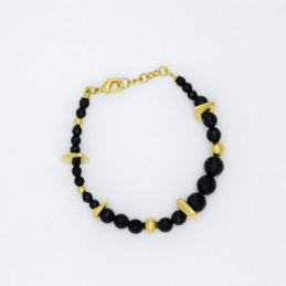 Bracciale con un filo di pietre naturali ( agata nera sfaccettata ) e inserti in ottone.