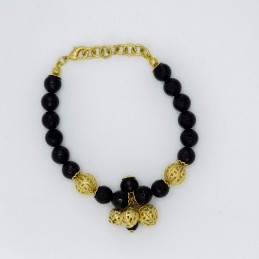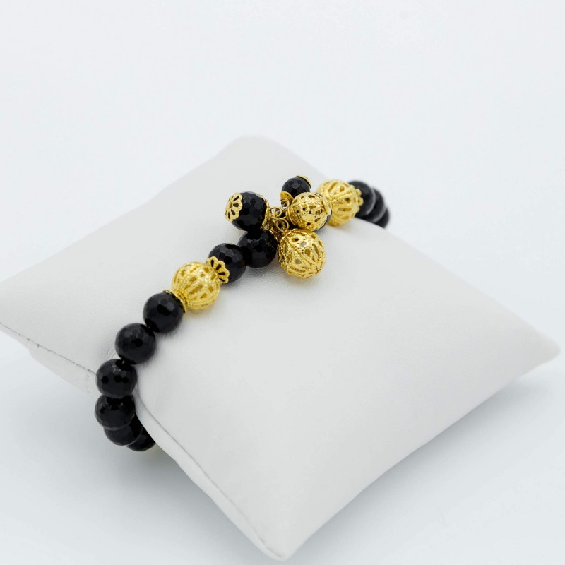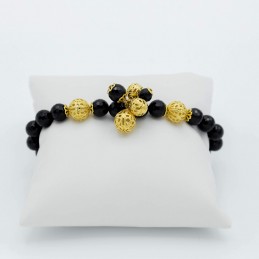 Bracciale un filo con agata nera sfaccettata e sfere traforate lucide