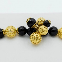 Bracciale infilato a mano con pietre naturali e sfere traforate, disponibile anche nella versione argentata.Le sfaccettature dell'agata naturale donano al gioiello lucentezza e, associate alle sfere traforate, rendono il bracciale prezioso ed elegante. Indossalo nelle migliori occasioni.