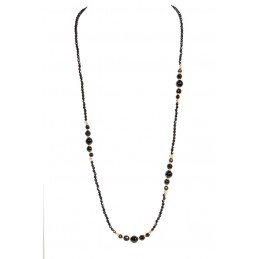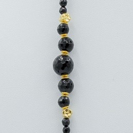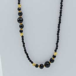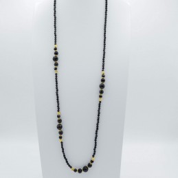 Elegante collana composta da pietre naturali nere con l'aggiunta di inserti in ottone galvanizzato a forma di piccoli fiori.