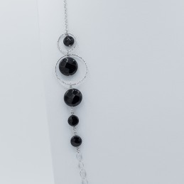 Prezioso gioiello composto da agate nere annodate singolarmente, il particolare di questo gioiello è il cerchio centrale in argento.