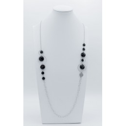 Sofisticata collana in argento 925 con pietre naturali a forma di disco piatto sfaccettato. Le pietre che si trovano all'interno dei cerchi donano movimento al gioiello. Splendida in ogni suo dettaglio.