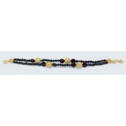Bracciale un filo con agata nera sfaccettata e sfere liscie lucide