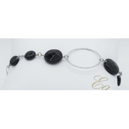 Prezioso gioiello composto da agate nere annodate singolarmente, il particolare di questo gioiello è il cerchio centrale in argento.