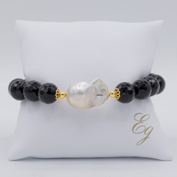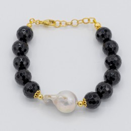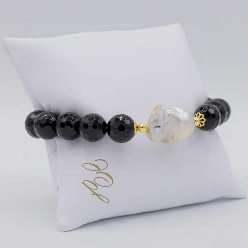 Importante bracciale con agata naturale sfaccettata impreziosito dalla perla barocca centrale. Elegante e raffinato indossalo per le occasioni più importante non passerai inosservata.