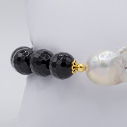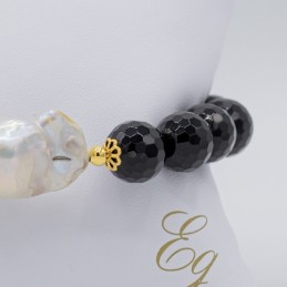 Meravigliosa collana con agata nera sfaccettata e una perla barocca. La sfaccettature della pietra naturale dona alla collana una splendida luce coronata dalla perla barocca.