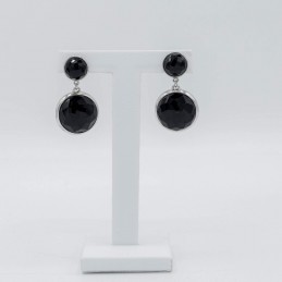 Orecchino con ossidiana nera sfaccettata e argento 925 galvanizzato o rodiato