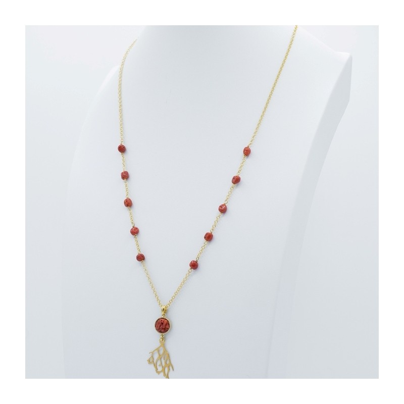 Collana con argento 925 galvanizzato oro o rodiato e corallo naturale