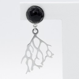 Meraviglioso ed elegante orecchino con ossidiana nera e inserto in argento 925 con la forma di un rametto di corallo. Raffinato sotto ogni aspetto.