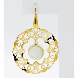 Vistoso orecchino con madreperla centrale, a fare da cornice a questa splendida pietra troviamo uno spettacolare rosone in argento 925 con lavorazione ondulata, questo dona brillantezza al gioiello e a chi lo indossa.