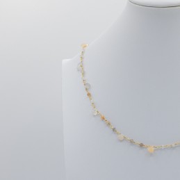 Raffinata collana con colori tenui e delicati. Gioiello realizzato con acquamarina, madreperla e aulite. Combinazione di colori eccellente per una donna di classe.