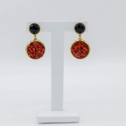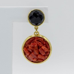 Orecchino con corallo naturale, ossidiana nera sfaccettata e argento 925 galvanizzato o rodiato