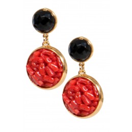 Splendido gioiello interamente assemblato a mano. Questo orecchino è formato da due castoni in argento 925 pieno. Nella parte superiore troviamo un piccolo cammeo da 10 mm di diametro, mentre nella parte inferiore il castone grande contiene il corallo naturale incollato pezzo per pezzo.