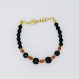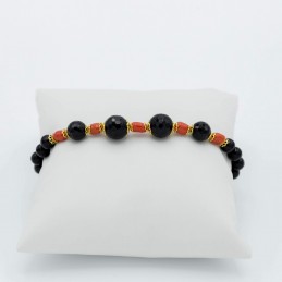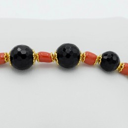 Bracciale un filo con corallo sassolino e agata nera sfaccettata di varie dimensioni.