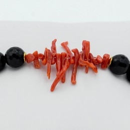 Il rosso del corallo viene esaltato dal nero dell'agata sfaccettata, semplice e delicato da indossare in ogni occasione.