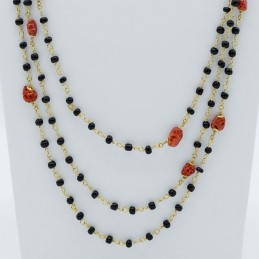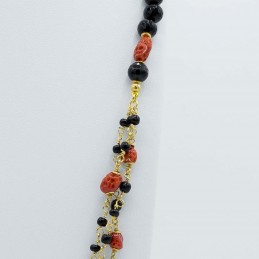 Splendido gioiello interamente realizzato a mano con elementi naturali come il corallo, le perle e l'agata nera sfaccettata. La maestria dei nostri artigiani riesce a donare ad ogni singolo gioiello che realizziamo una sua personalità.