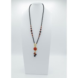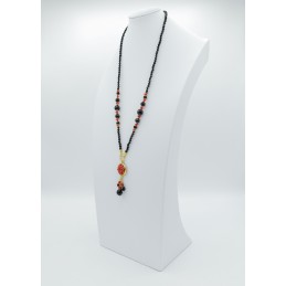 Splendido gioiello interamente realizzato a mano. I tre fili che la compongono sono agate nere e sassi di corallo con parti di perla bianca. Questa collana non è solo un gioiello, ma qualcosa di unico e speciale, proprio come te.