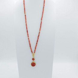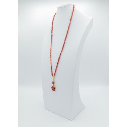 Raffinata collana con opale naturale rosa con scaglie di corallo rosso. Questo gioiello nella sua semplicità racchiude tutta la maestria dei nostri artigiani.
