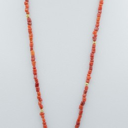 Le pietre naturali annodate una per volta donano al gioiello fascino ed eleganza. Il tutto è impreziosito dalla qualità del corallo rosso naturale. In questa collana troviamo due forme di corallo. Le scaglie e le cannette, le prime formano i due grappoli che troviamo tra un agata e l'altra, le seconde le troviamo nella parte inferiore, regalando armonia a...