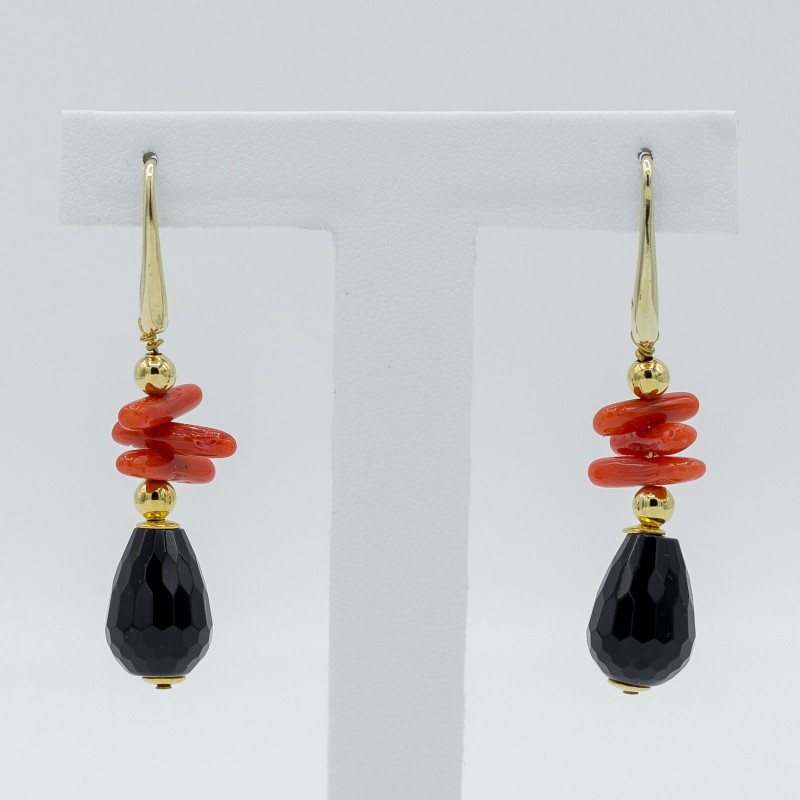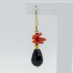 Elegante orecchino con corallo cupolone perfettamente rifinito, le sfere lisce rendono, assieme alla sfaccettatura dell'agata, questo gioiello molto luminoso.