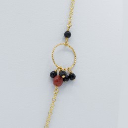 Collana semplice e raffinata, resa originale dai cerchi nei quali sono appese piccole agate e sfere di corallo