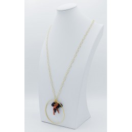 Intramontabile collana con pendente. Questo gioiello è un classico rivisitato con colori e forme nuove. La bellezza di questo pendente sta nei colore finemente abbinati tra loro.
