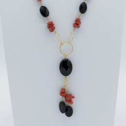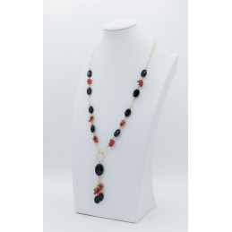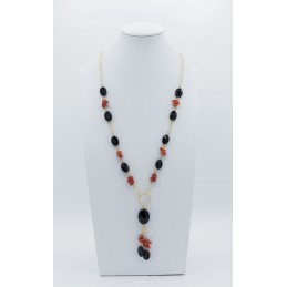 Splendido gioiello interamente realizzato a mano. I tre fili che la compongono sono agate nere e sassi di corallo con parti di perla bianca. Questa collana non è solo un gioiello, ma qualcosa di unico e speciale, proprio come te.