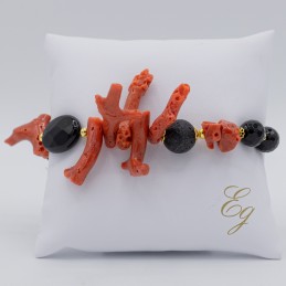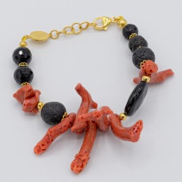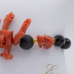COLLANA CON CORALLO GREZZO E PIETRA LAVICA