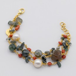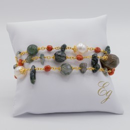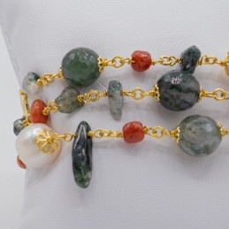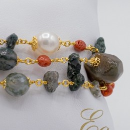 ORECCHINO CON GRAPPOLI DI PIETRE NATURALI E CORALLO