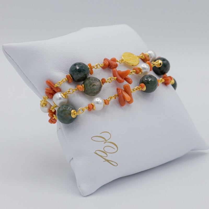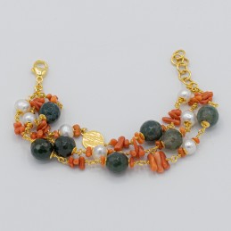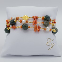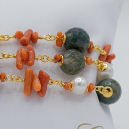 ORECCHINO CON GRAPPOLI DI PIETRE NATURALI E CORALLO
