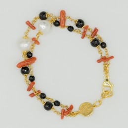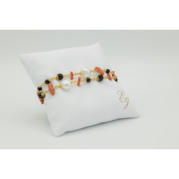 Splendido gioiello interamente realizzato a mano con elementi naturali come il corallo, le perle e l'agata nera sfaccettata. La maestria dei nostri artigiani riesce a donare ad ogni singolo gioiello che realizziamo una sua personalità.