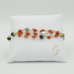 BRACCIALE CON SASSI DI CORALLO E PERLE