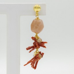 Estroso gioiello da indossare con disinvoltura. Questo orecchino arricchito da frange di corallo rosso abbinate al rosa tenue dell'agata, aggiunge colore al tuo out fit.