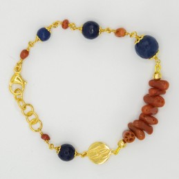 Bracciale annodato con corallo naturale e quarzo blu