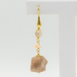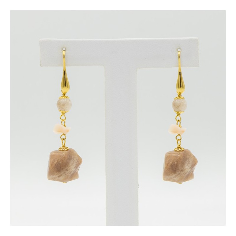 Orecchino pendente con corallo bianco e agata rosa