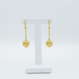 Orecchino pendente con catena e sfera traforata grande in ottone galvanizzato/rodiato.