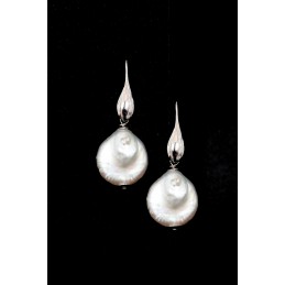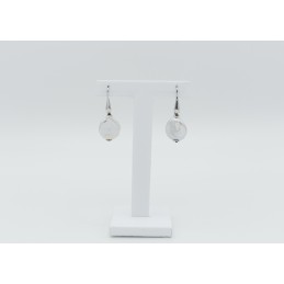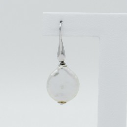 Orecchino pendente con perle naturali tonde e piatte.