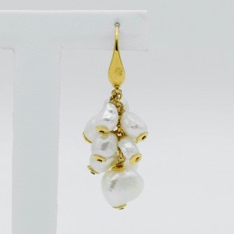 Orecchino pendente con perle naturali tonde e piatte.Modello classico e intramontabile ma mai banale, grazie allo splendore della perla stessa.Disponibile anche nella versione più corta con perno al posto della monachella (amo) anche dorato.