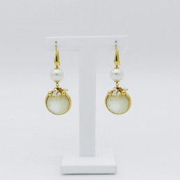 Orecchini con splendide pietre naturali, arricchite da eleganti perle. Le pietre e le perle sono infilate in un cavo in acciaio, formano un cerchio. Questo dona originalità al gioiello stesso.