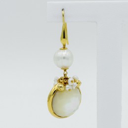 Splendido orecchino formato da grappoli, questi sono formati da pietre naturali, perle e un elegante rametto di corallo in argento 925.
