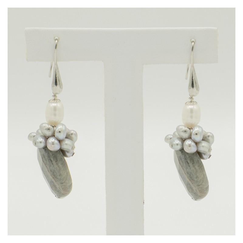 Gioiello magistralmente costruito a mano. Le perle in questa collana sono annodate singolarmente una per una e unite tra loro da piccole contromaglie, così da donare alla stessa una maggiore resistenza e morbidezza. Il particolare è dato dai grappoli di perle grigie sulla splendente labradorite. Sarà per voi un piacere indossarla.