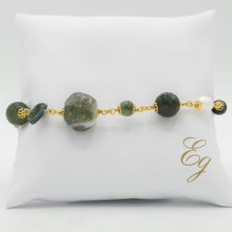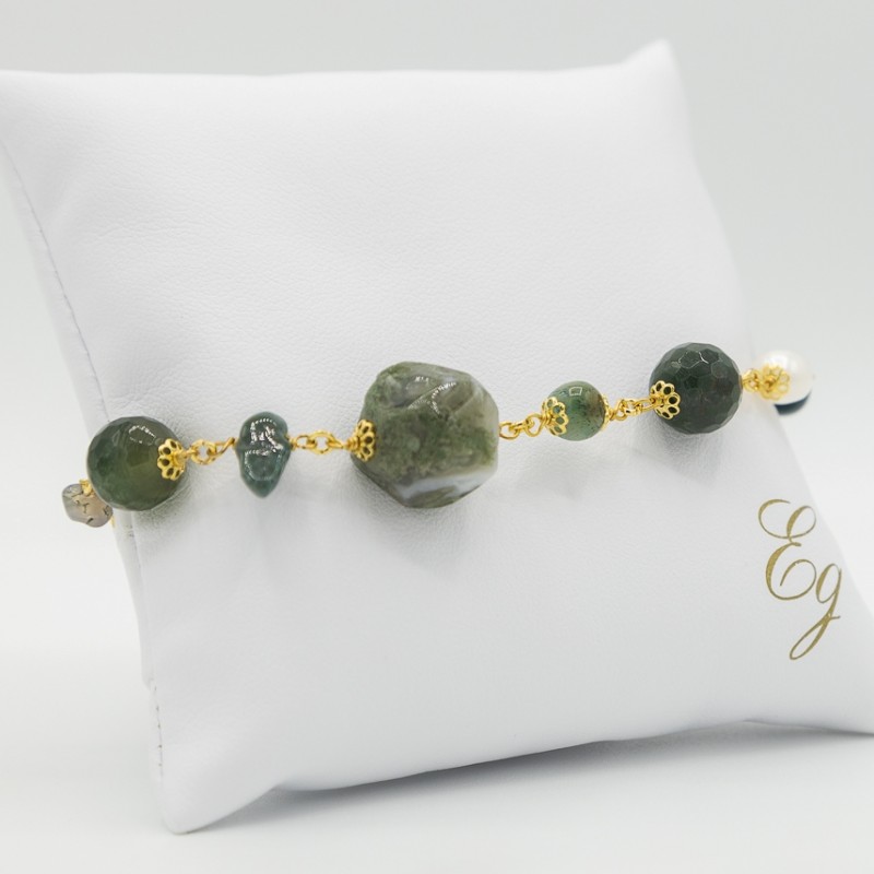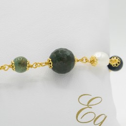 Elegante bracciale con pietre annodate sapientemente e singolarmente. Le quali vengono unite da piccole contromaglie. Questa lavorazione valorizza ancora di più un gioiello già prezioso di suo.