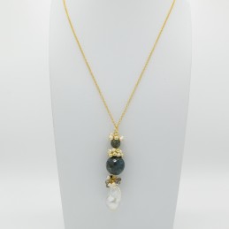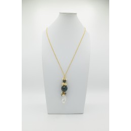 Intramontabile gioiello. La perla barocca grazie alla sua forma e lucentezza dona da sempre eleganza. In questo orecchino, in particolare, troviamo delle splendide agate verdi ad arricchire un gioiello già prezioso di suo.